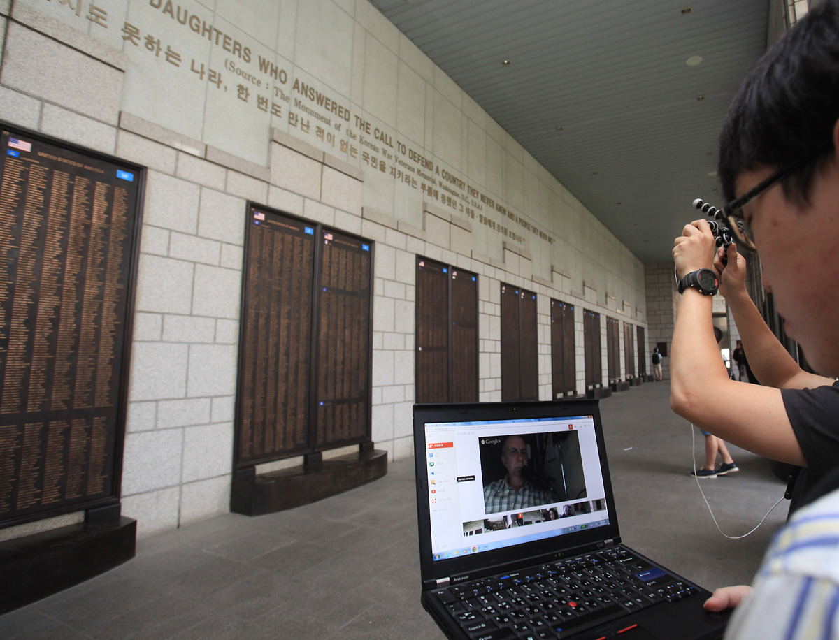 전쟁기념관에서 미국의 참전용사들과 행아웃 진행 중